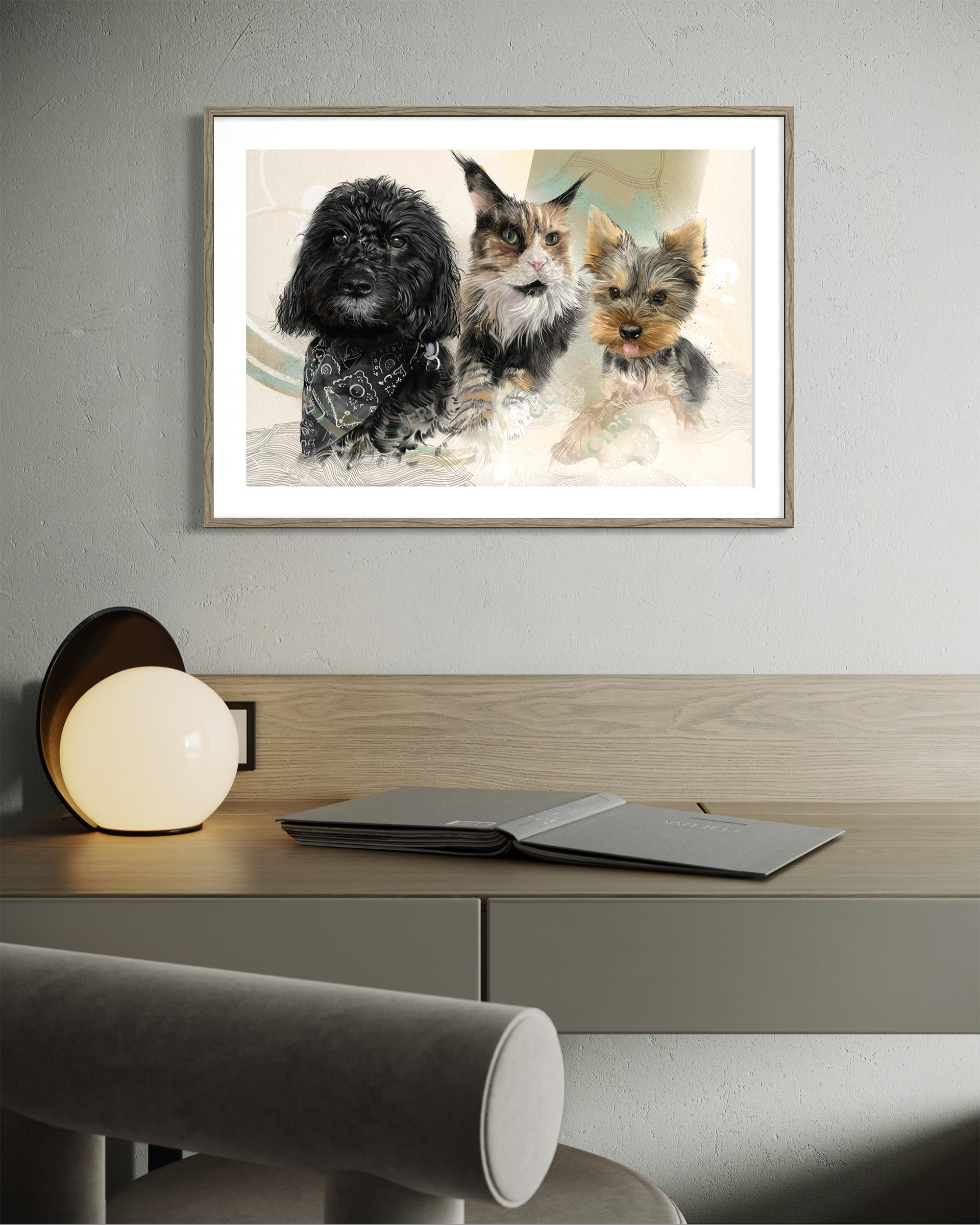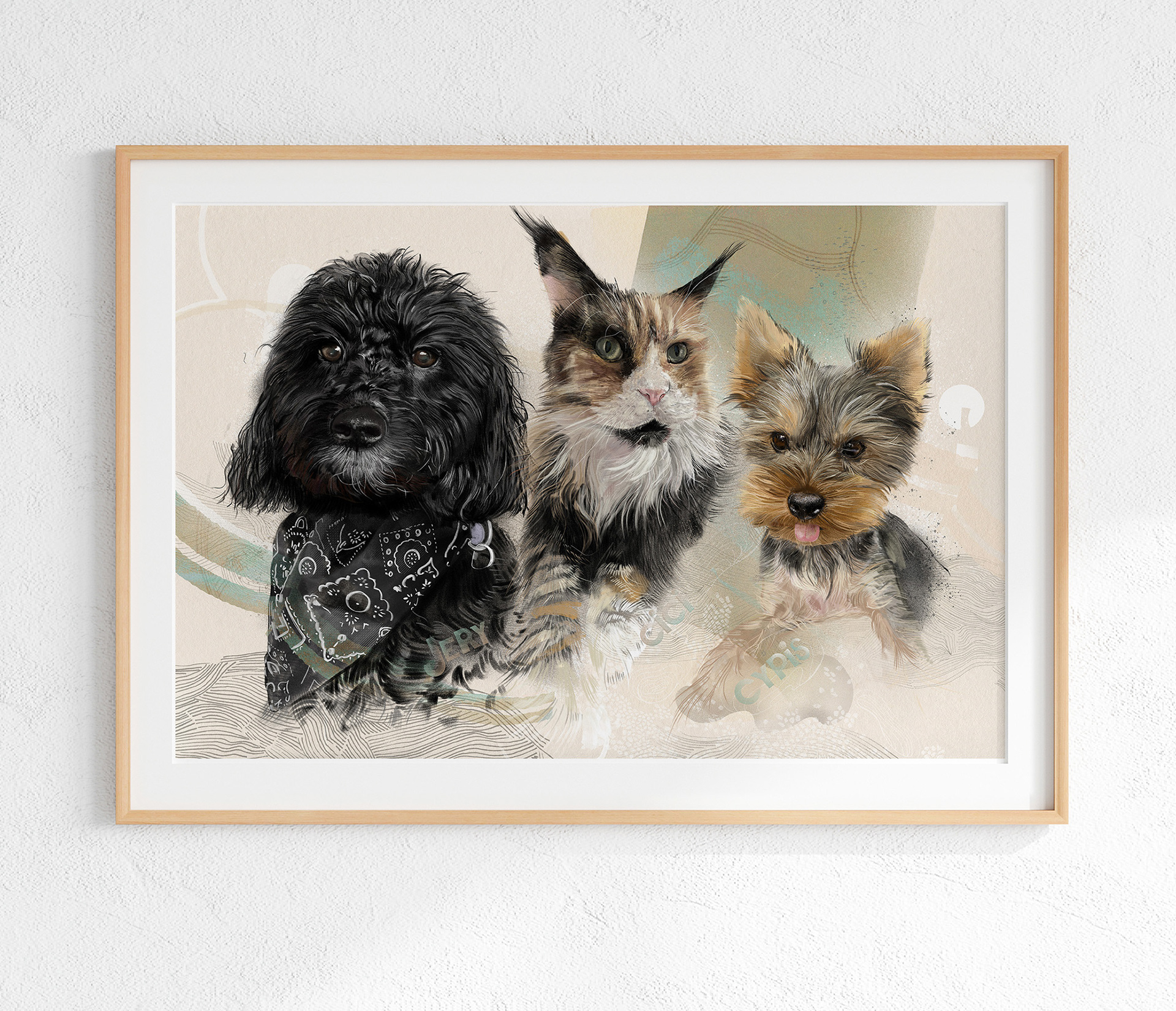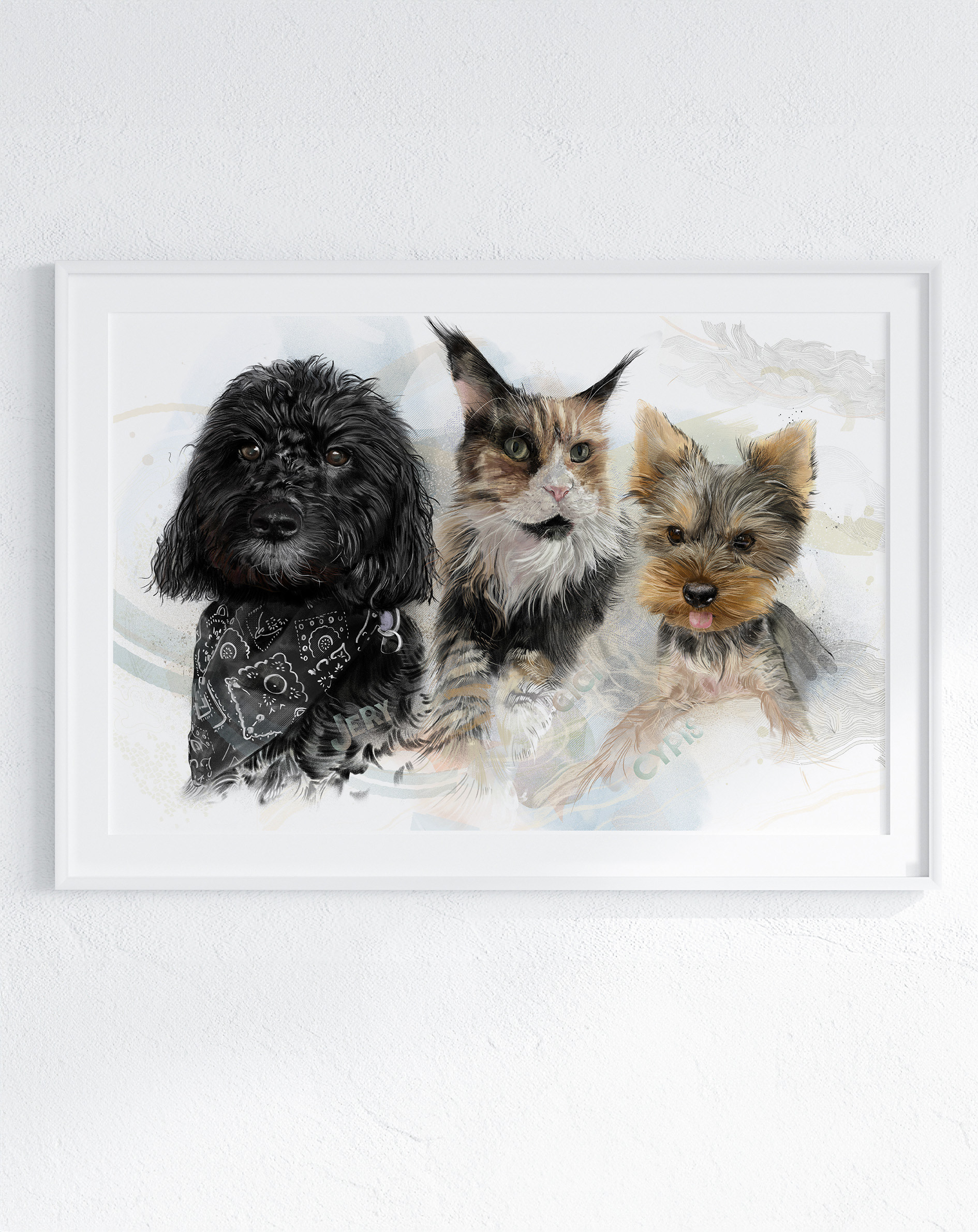 Rysuję portrety zwierzaków na zamówienie. Poznajcie trzech zwierzęcych przyjaciół. Każdy portret to połączenie tradycyjnego rysunku na papierze z cyfrowym szkicem na iPad Pro – dzięki temu ma swój niepowtarzalny charakter.