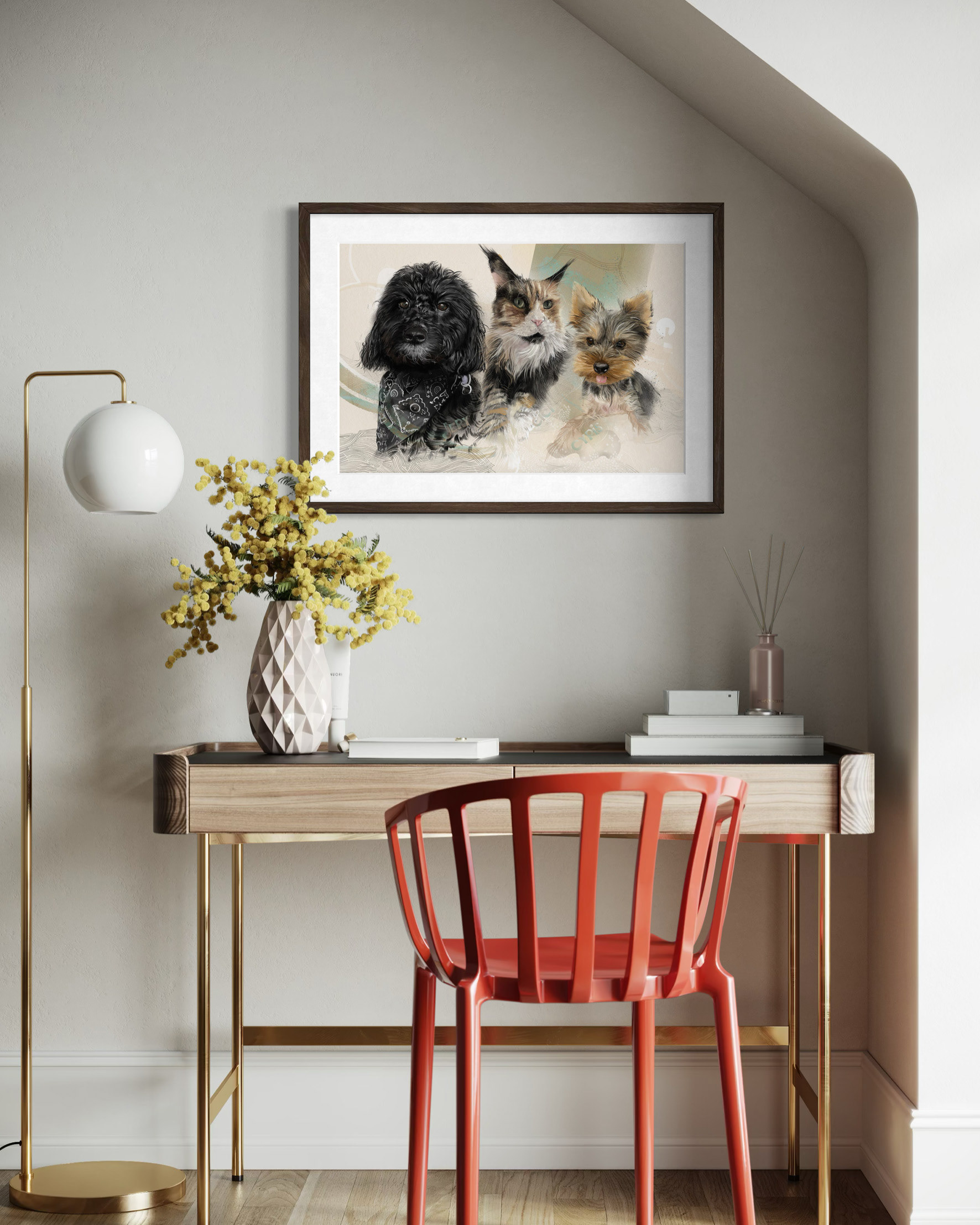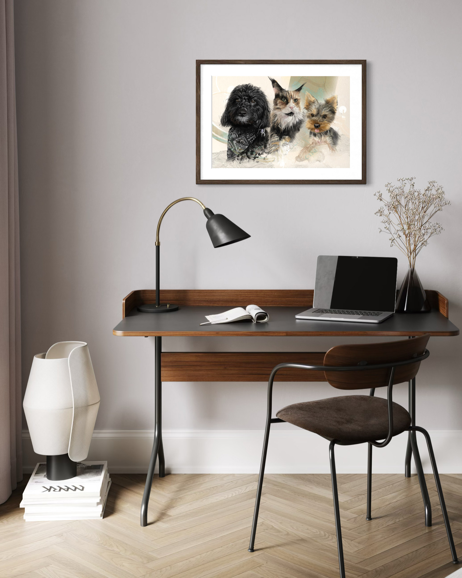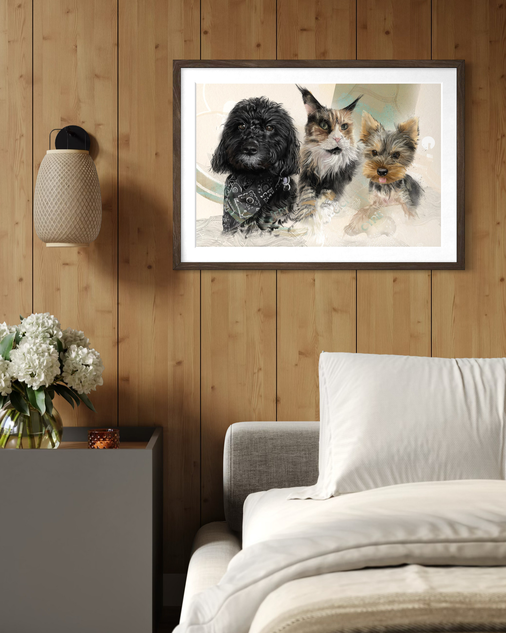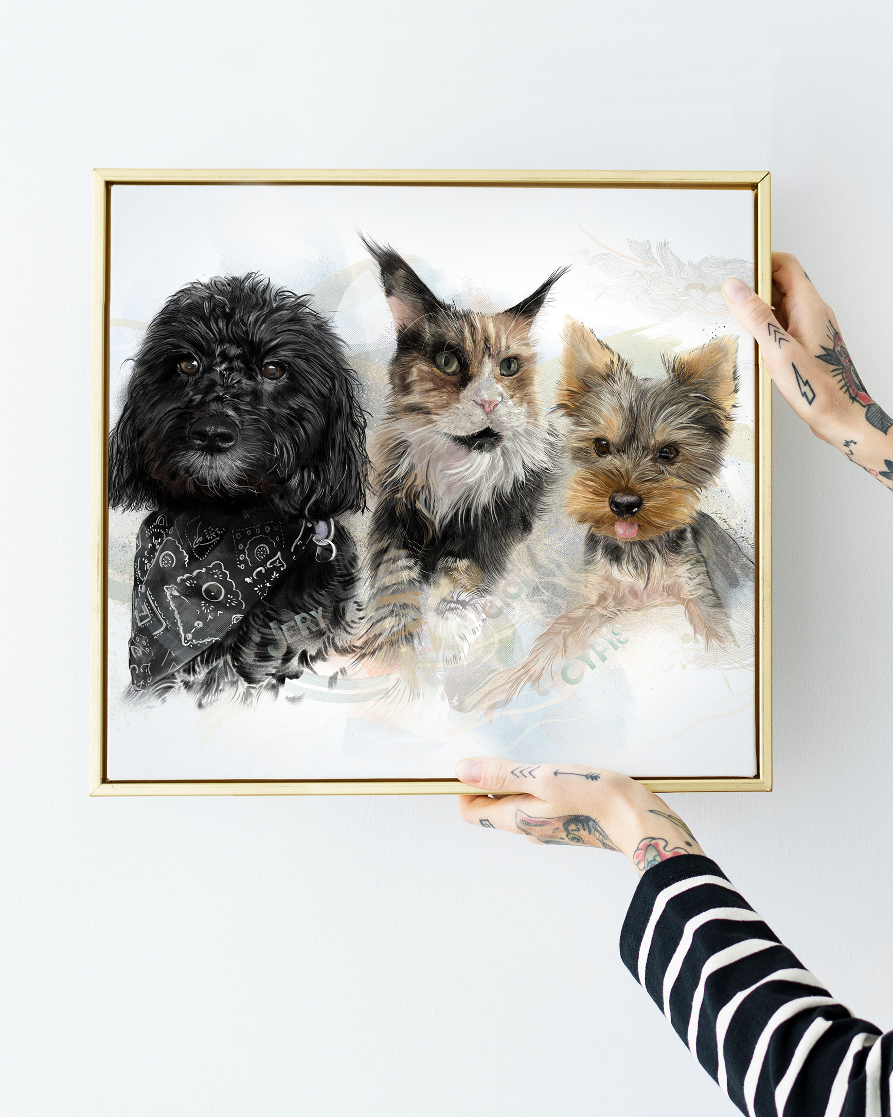Rysuję portrety zwierzaków na zamówienie. Poznajcie trzech zwierzęcych przyjaciół. Każdy portret to połączenie tradycyjnego rysunku na papierze z cyfrowym szkicem na iPad Pro – dzięki temu ma swój niepowtarzalny charakter.