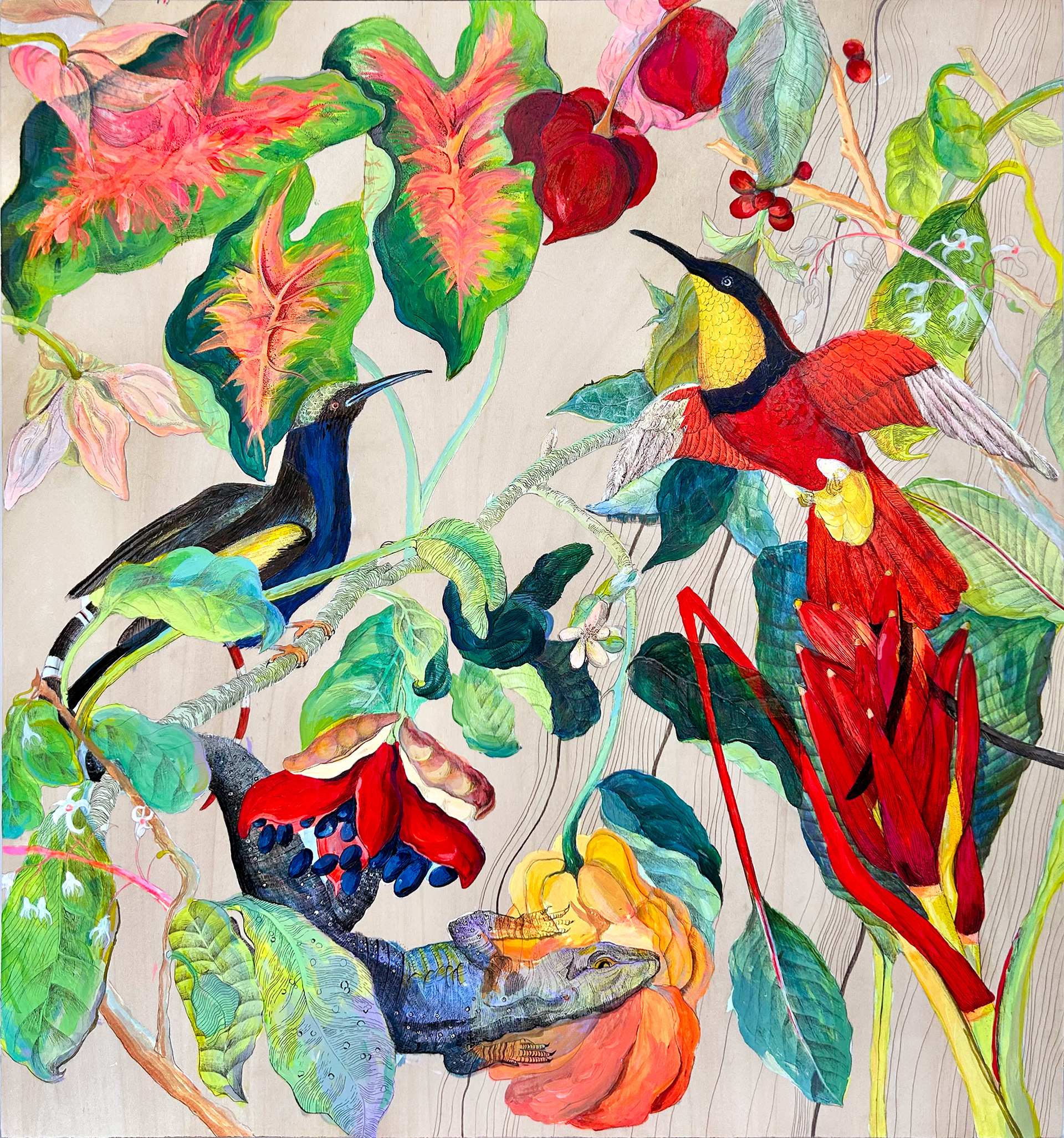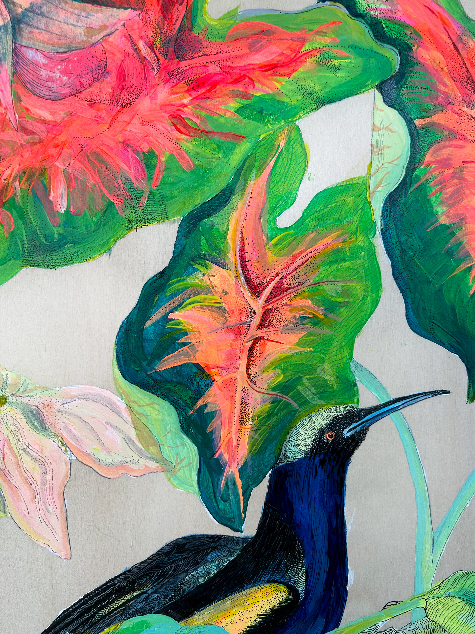 acrylic, fineliner, pencil on playwood / 65 x 70 cm