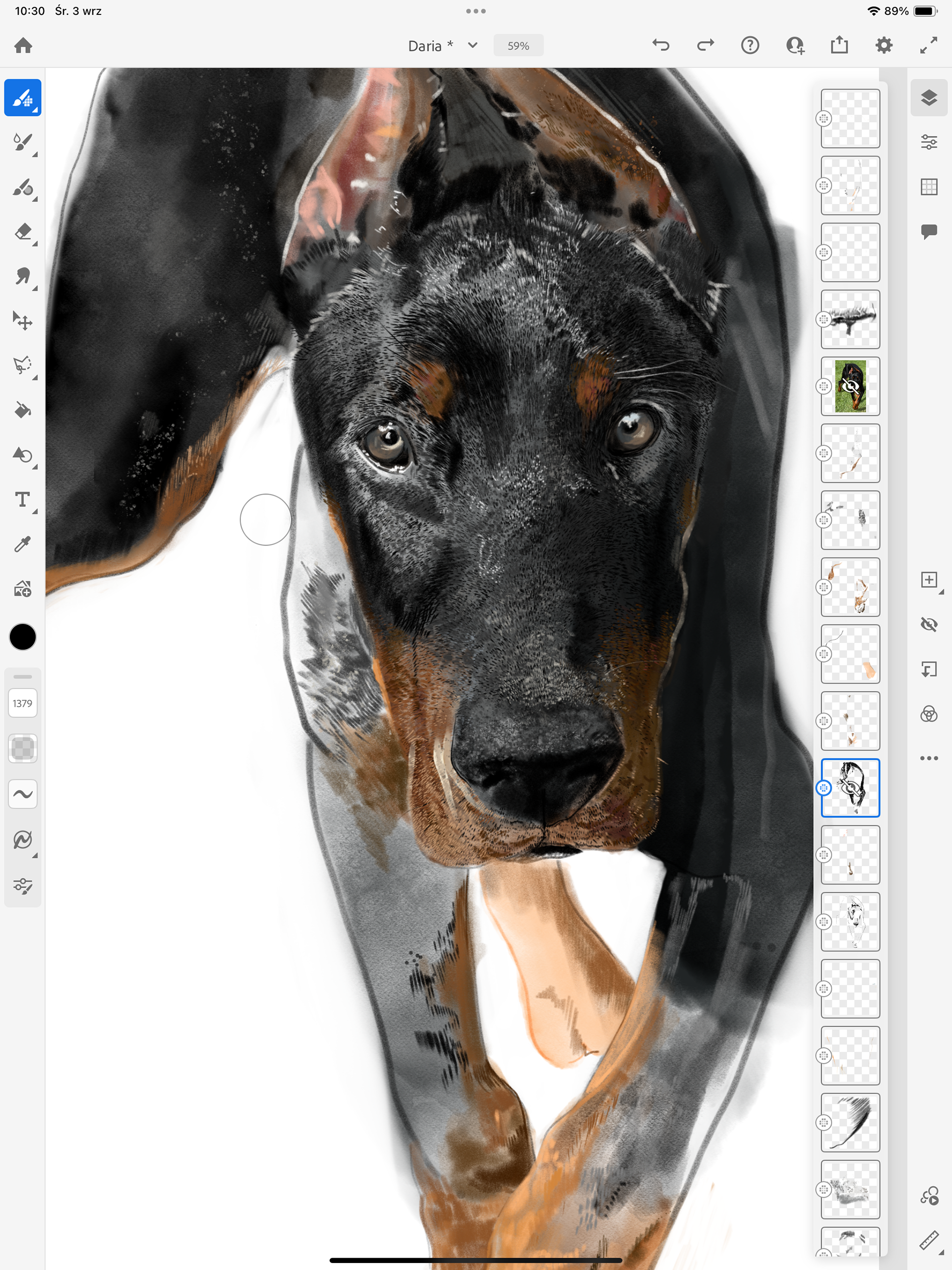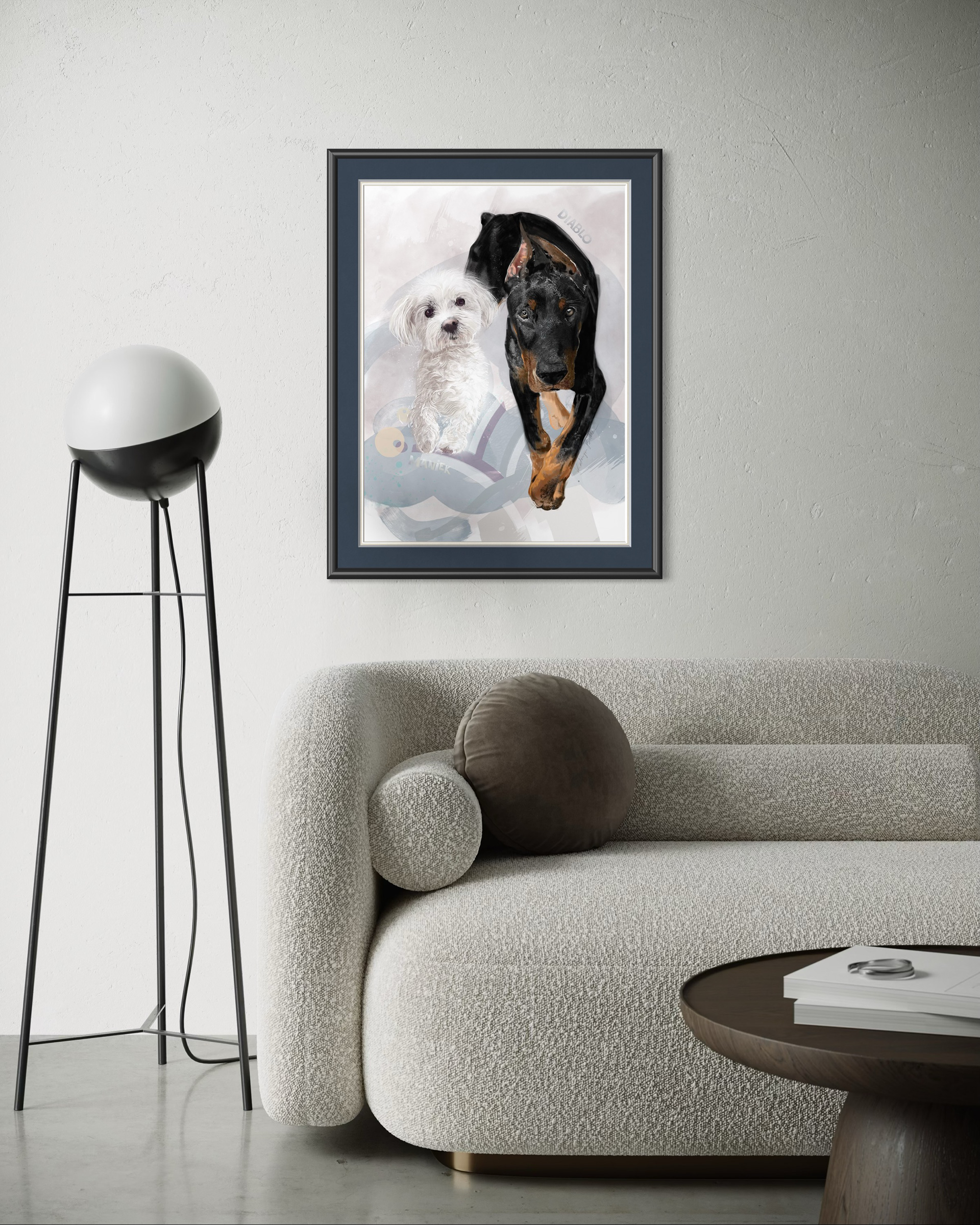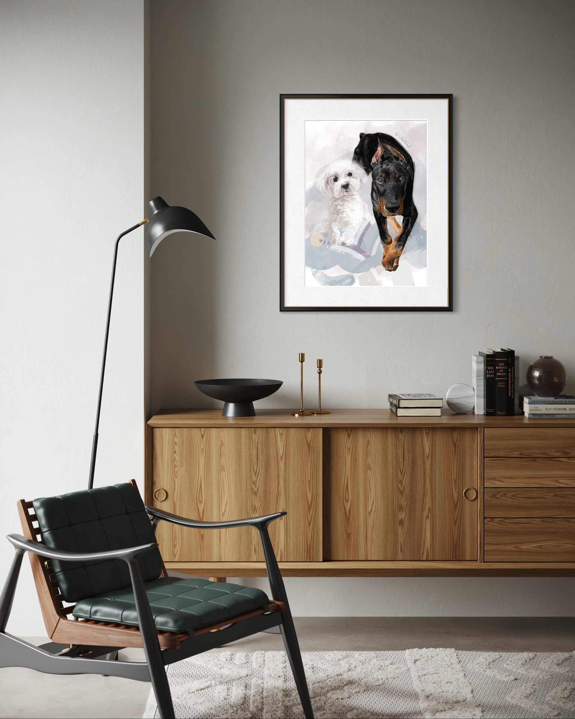 Rysuje portrety zwierzaków na zamówienie. Poznajcie pieski o imieniu Maniek i Diablo. Każdy portret to połączenie tradycyjnego rysunku na papierze z cyfrowym szkicem na iPad Pro – dzięki temu ma swój niepowtarzalny charakter.