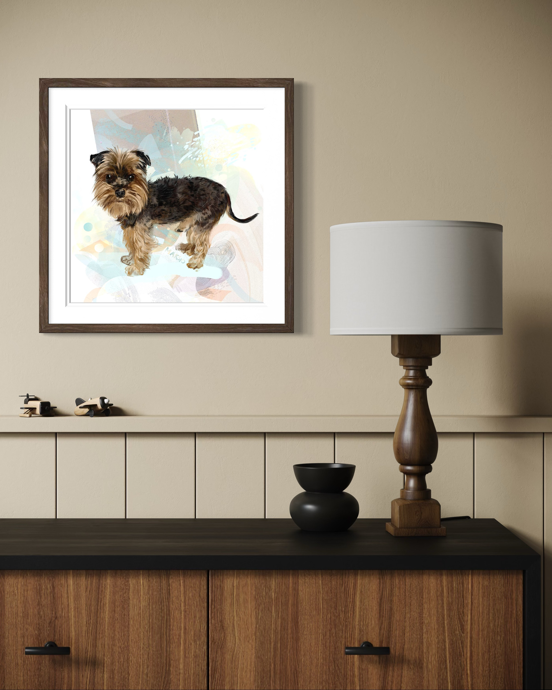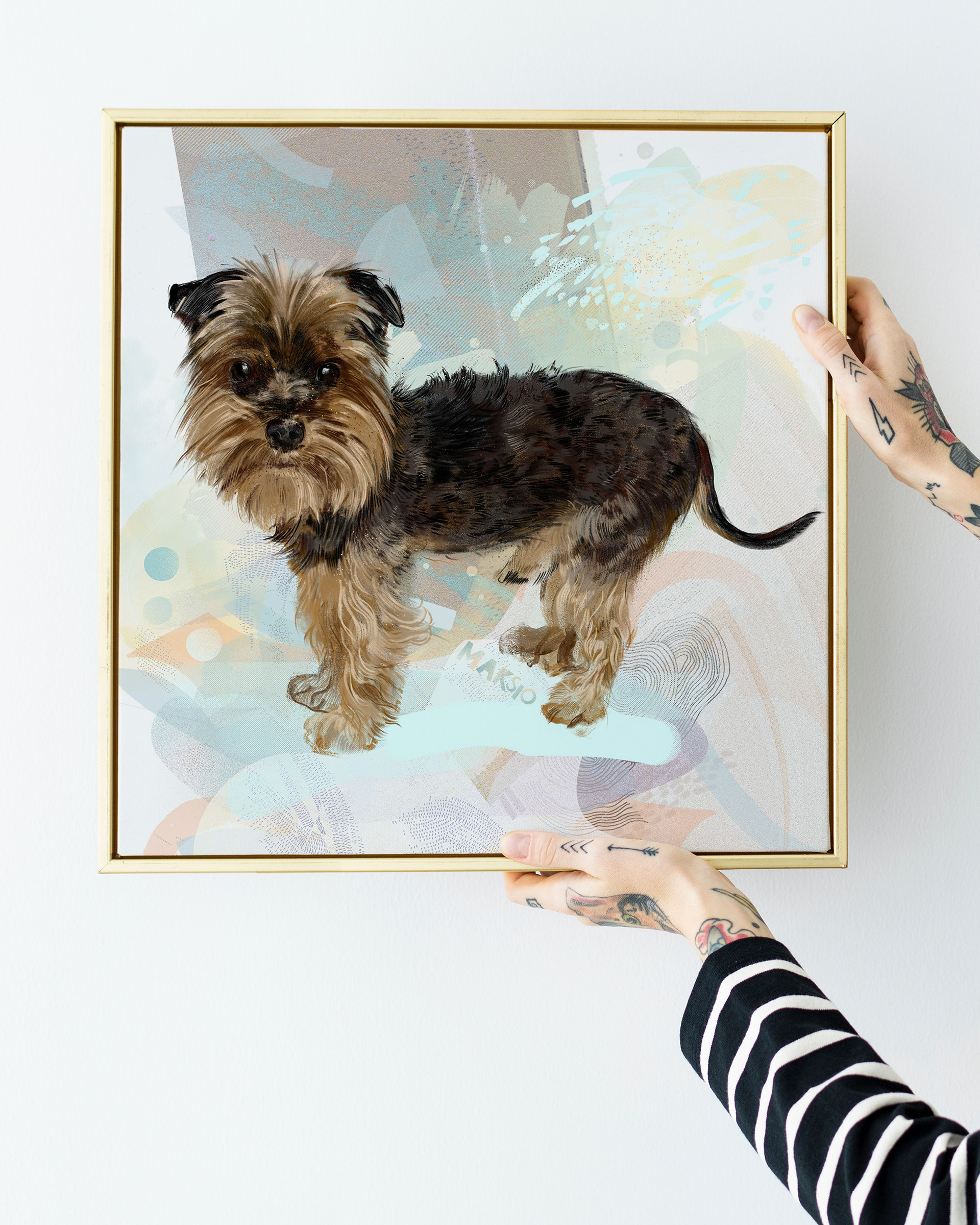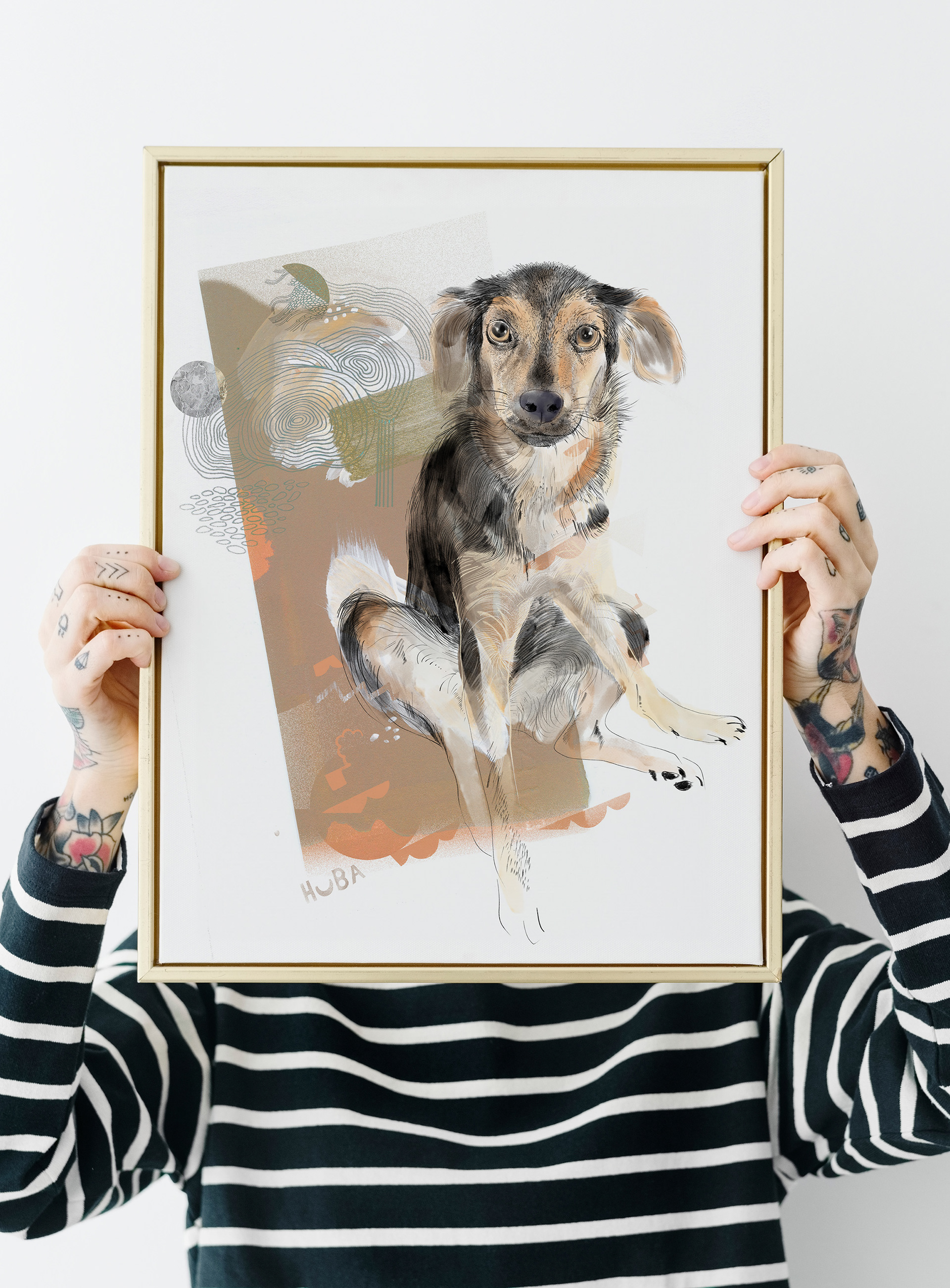 Rysuje portrety zwierzaków na zamówienie. Poznajcie pieska o imieniu Maksio. Każdy portret to połączenie tradycyjnego rysunku na papierze z cyfrowym szkicem na iPad Pro – dzięki temu ma swój niepowtarzalny charakter.