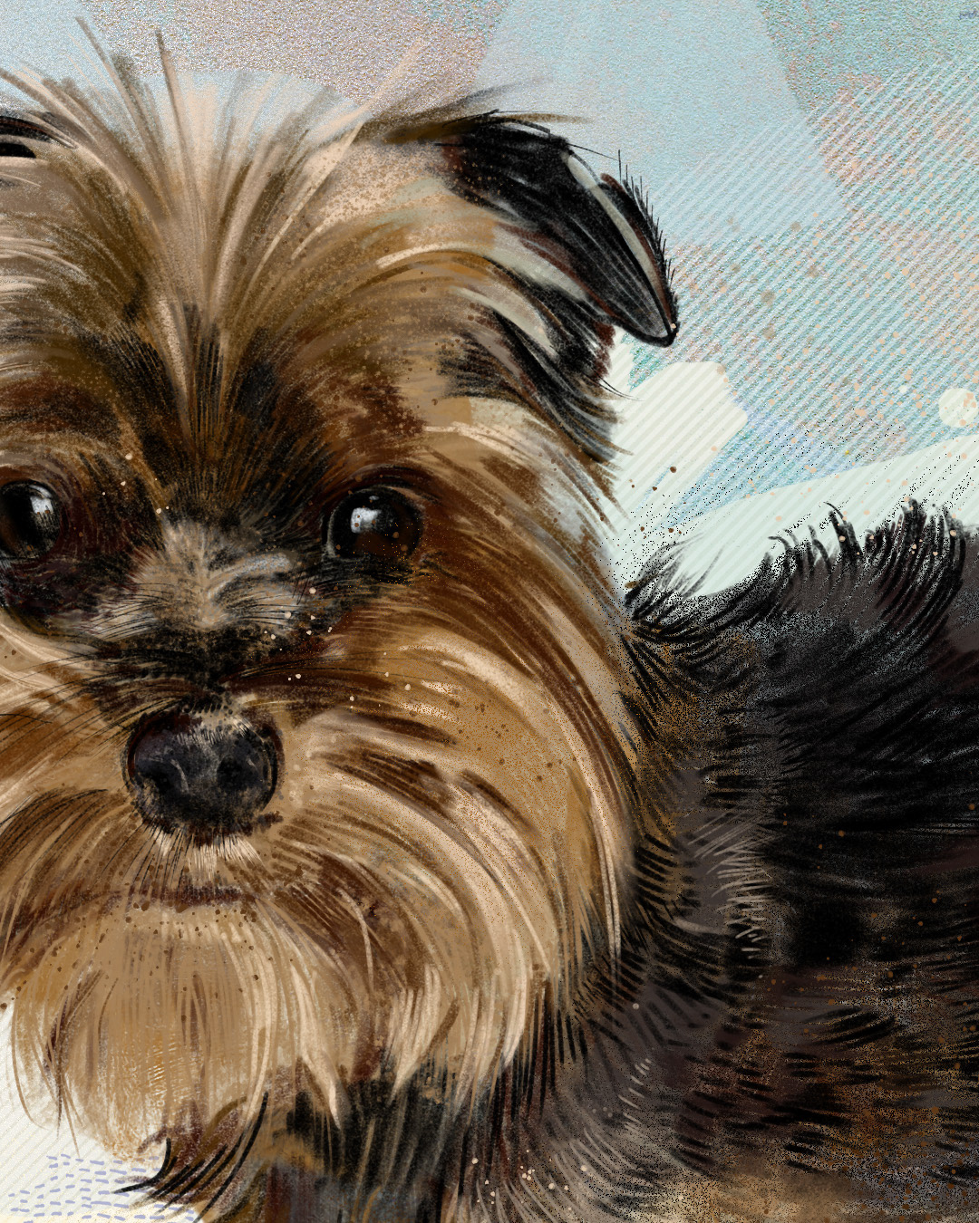 I draw pets portraits as a commission. Here is a sketch of a dog named Max. Each portrait is a blend of traditional hand-drawing on paper and digital illustration, created on an iPad Pro.