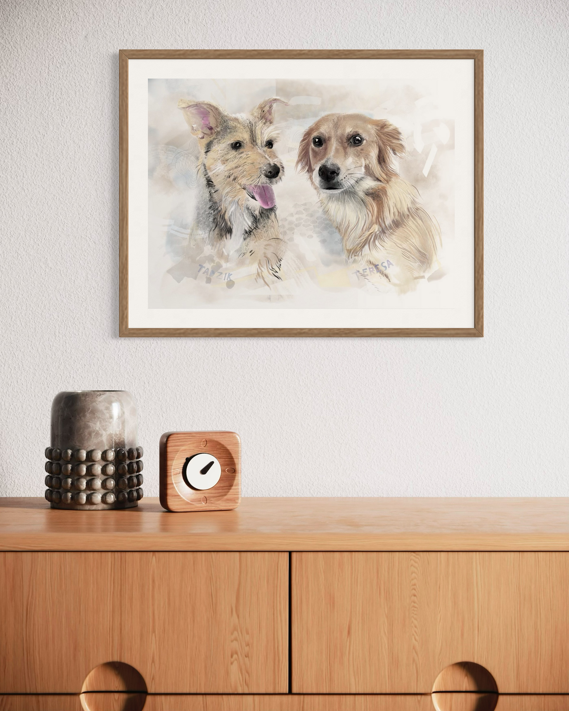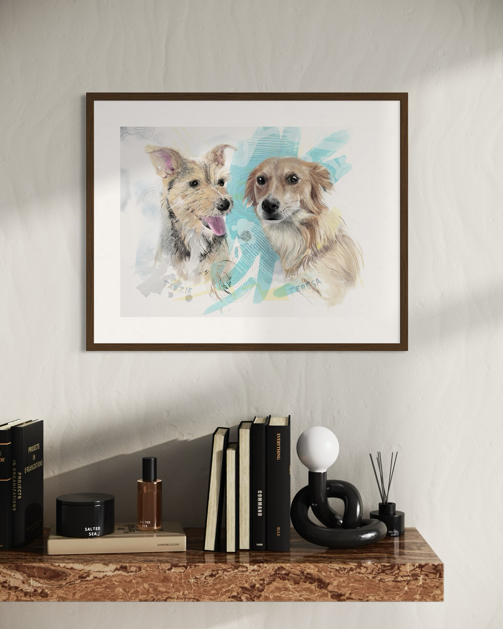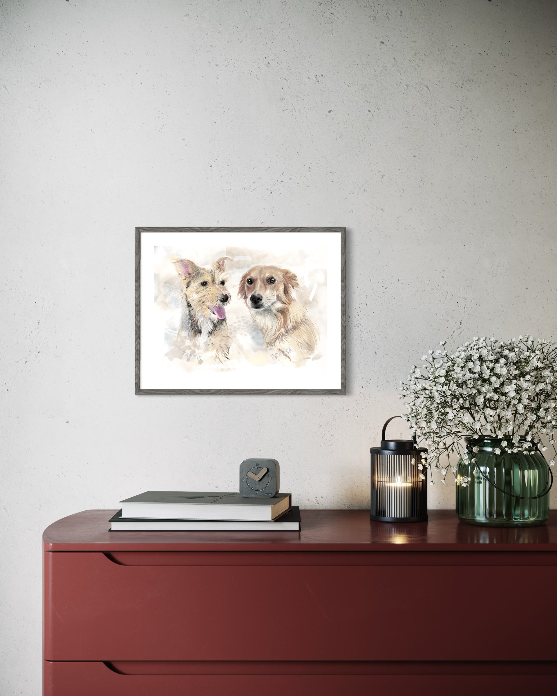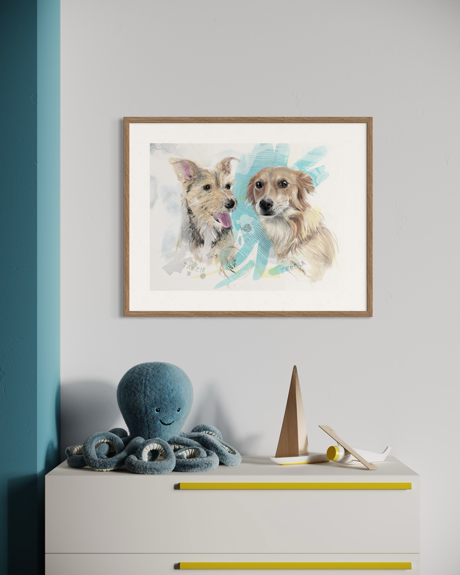 Rysuje portrety zwierzaków na zamówienie. Poznajcie dwa pieski, Terenie i Tadzika. Każdy portret to połączenie tradycyjnego rysunku na papierze z cyfrowym szkicem na iPad Pro – dzięki temu ma swój niepowtarzalny charakter.